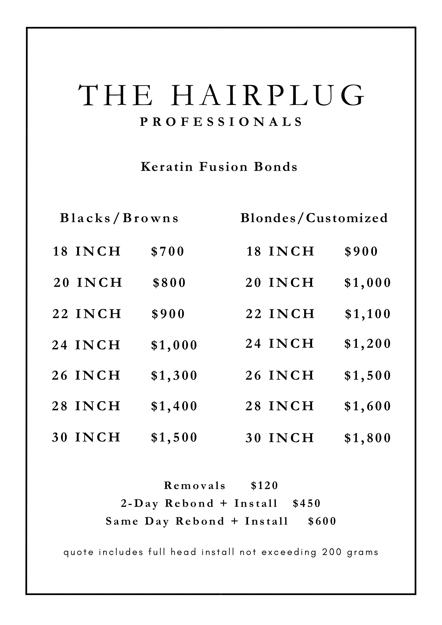 price includes hair + install.